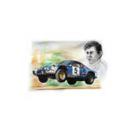 Dipinto celebrativo vittoria Thérier/Jaubert al Rali Internacional TAP 1973 Supporto: Cartoncino 48 cm x 33 cm - Tecnica: Pennelli, chine, matite e acrilico | ||